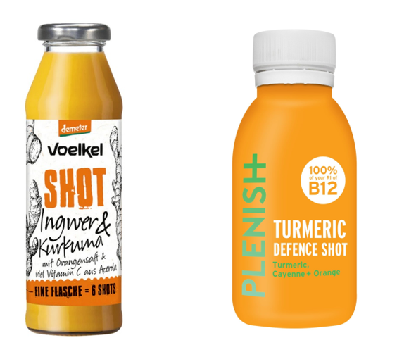 Many companies use turmeric and ginger in juices and extracts. Both spices are functional ingredients in drinks. In juices, ginger has become a trendy ingredient. This is due to its positive health image and the spicy sensation you get when you drink it. An important development connected to juice functionality is the rising popularity of juice shots. These are juices with functional ingredients and vitamins. They usually come in small bottles containing about 100ml of juice. Some brands have specifically made shots with ingredients that support the immune system. For example, the UK brand Plenish created ‘Ginger immunity’ and ‘Turmeric Defence’ shots.